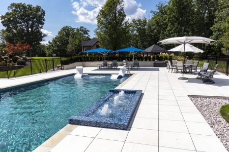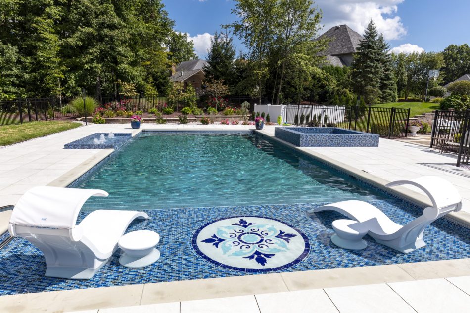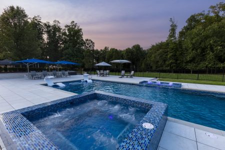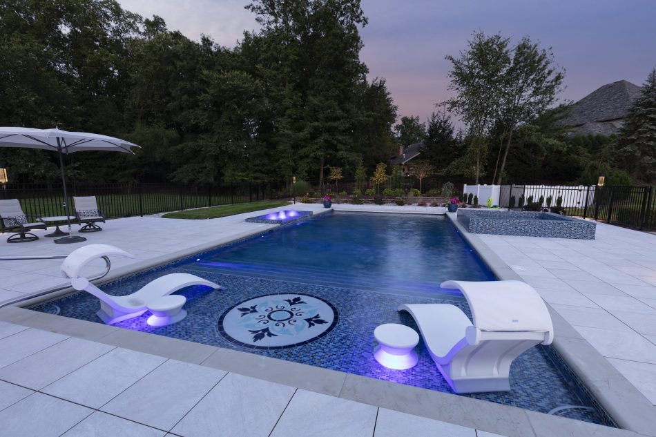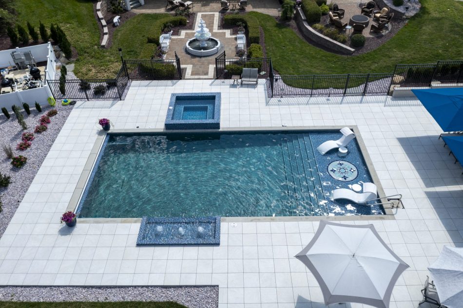 This custom pool and spa project in Canfield, Ohio blends creativity with expert craftsmanship. Every feature was chosen to create a stunning visual effect, both in daylight and after dark.